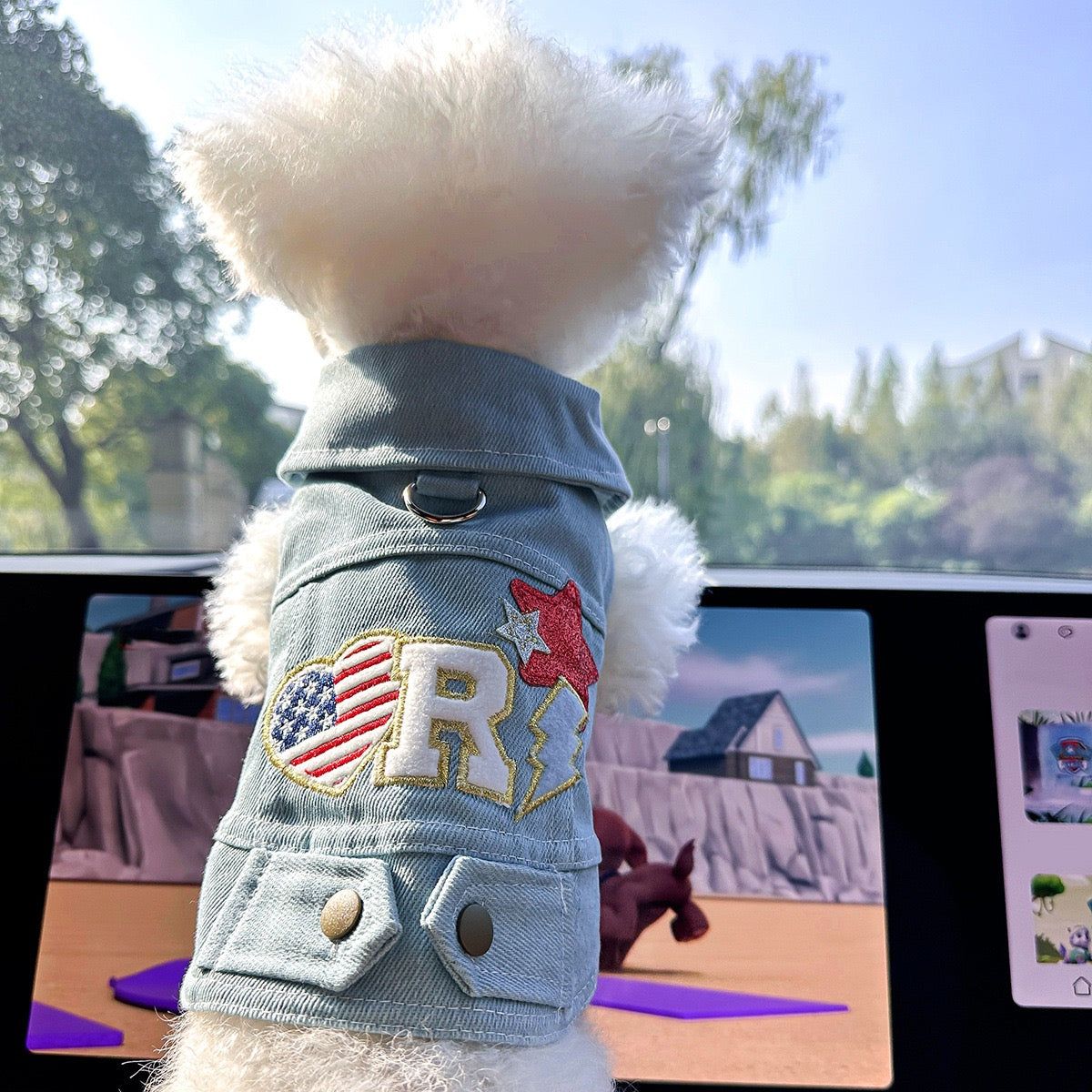 A fashion-forward jean jacket designed to add a touch of playful, edgy personality to their look.